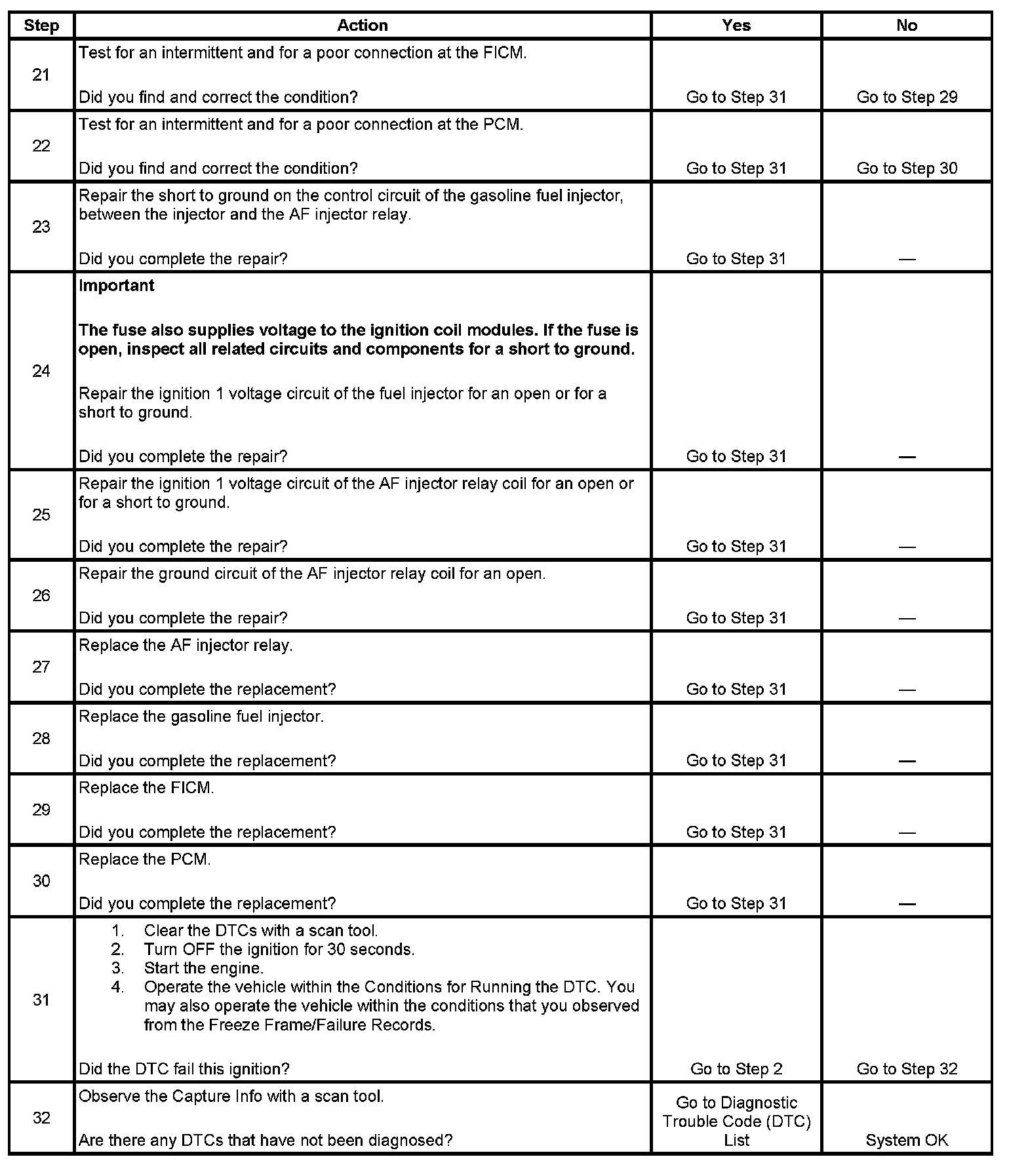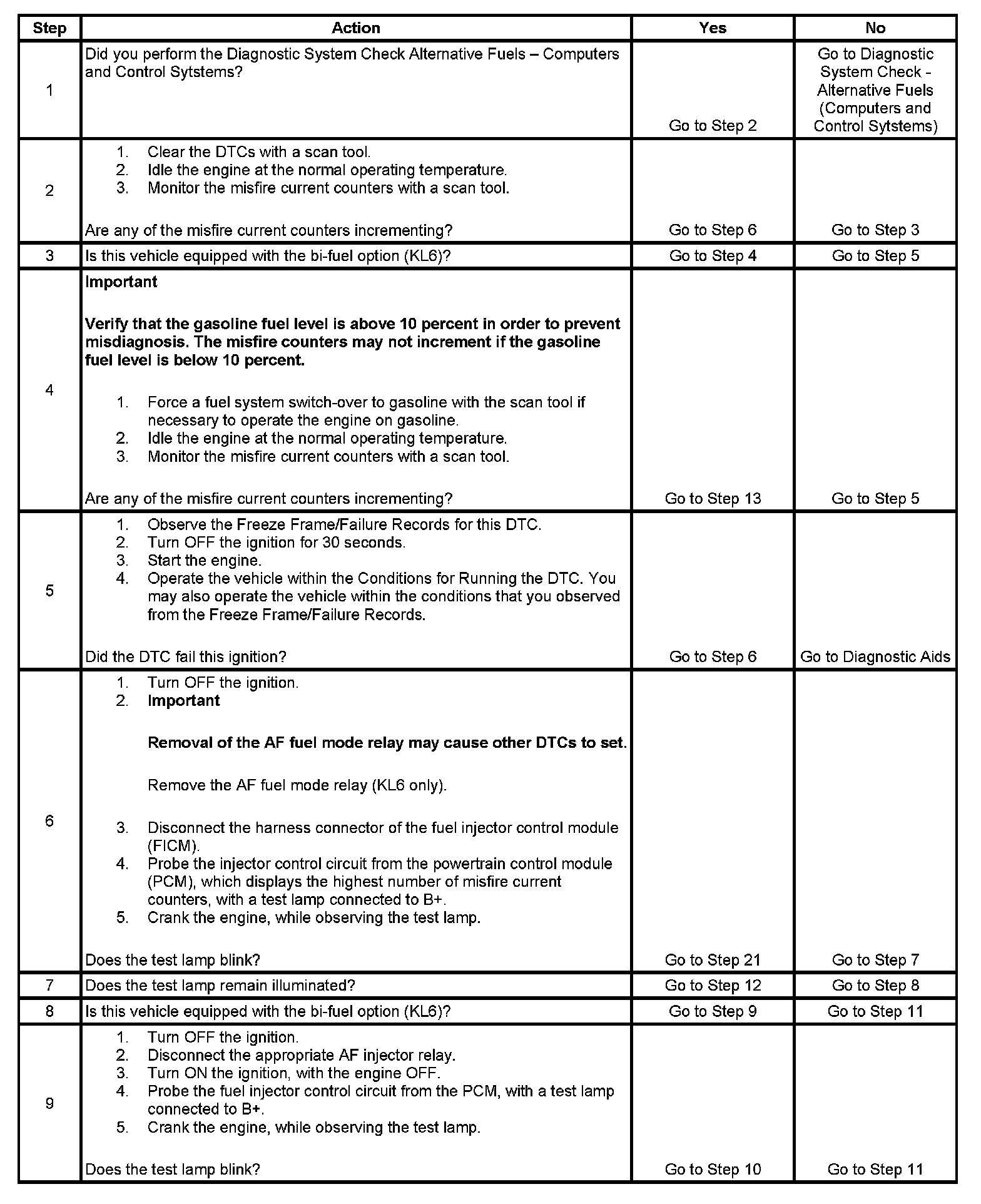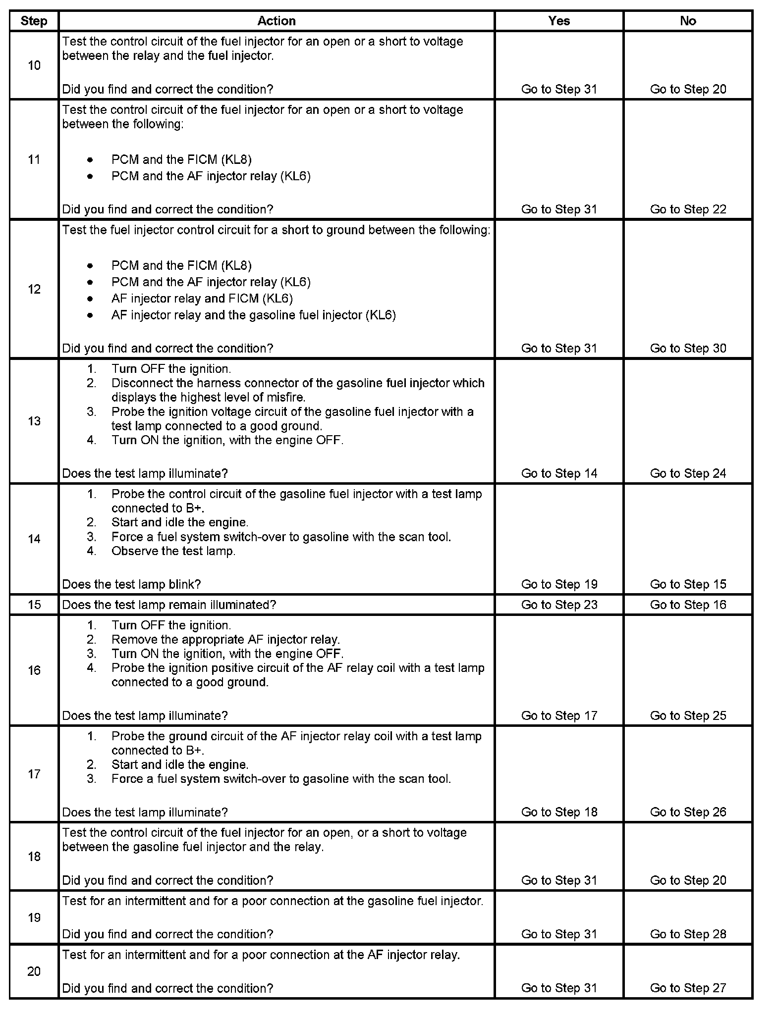 4. The step determines if the condition occurs during gasoline operation. If the vehicle misfires while on gasoline, then the condition is between the FICM and the gasoline fuel injector.