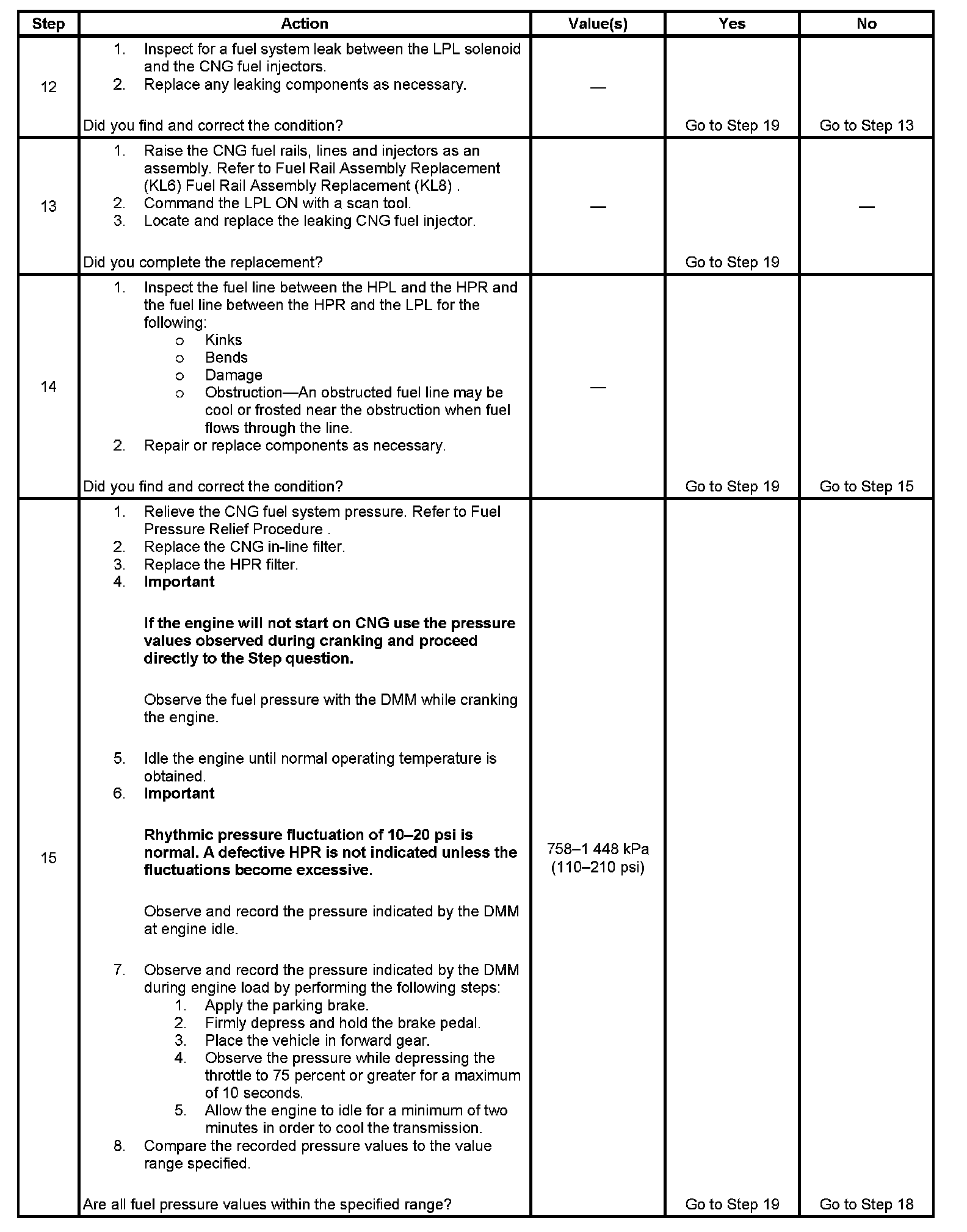 15. This step verifies that a fuel filter is not the cause of the condition. If the fuel pressure is within the specified range after the fuel filter replacement, then a plugged filter was the cause of the condition.