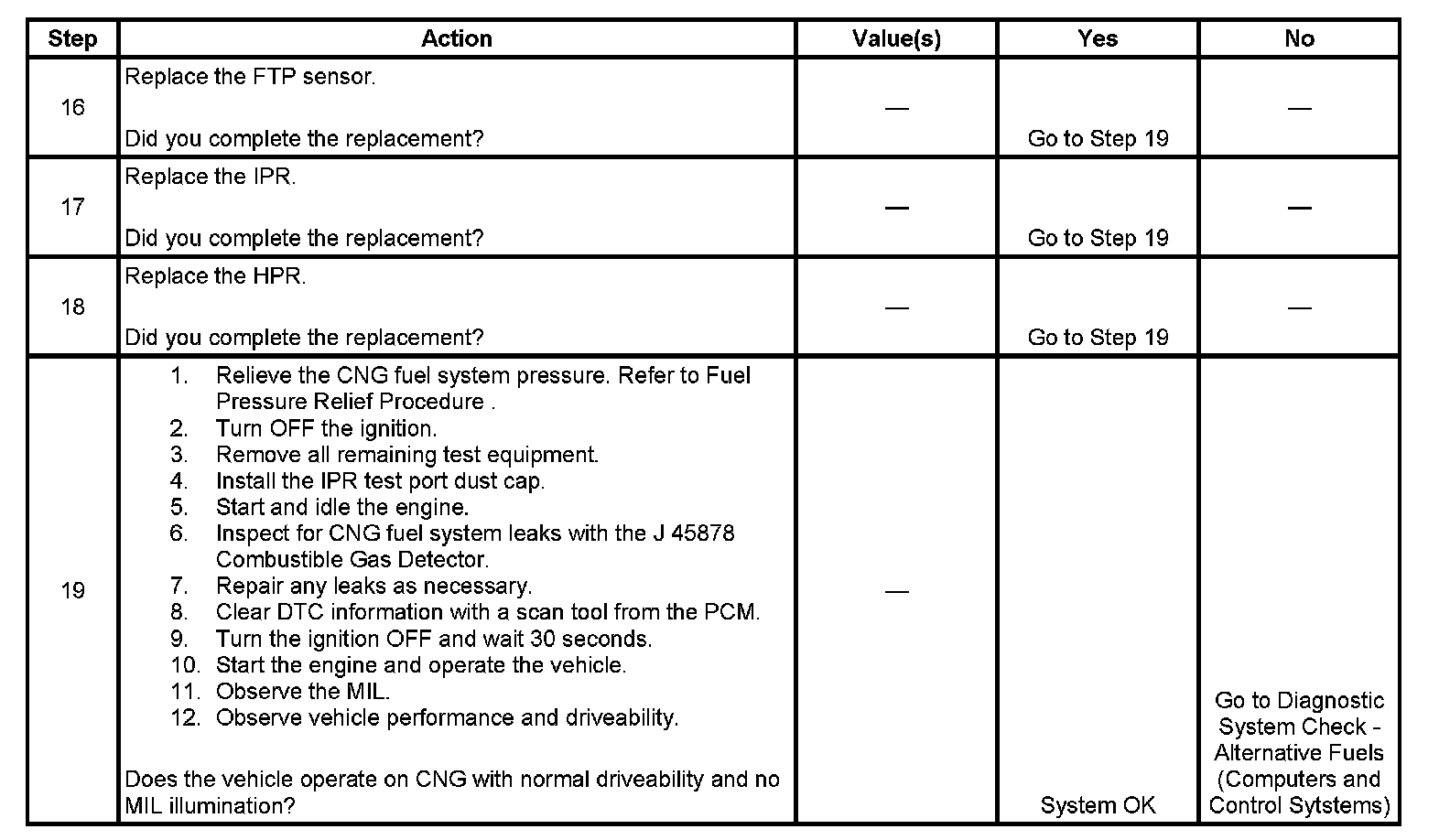 4. This step tests for a leak in the fuel system between the LPL, and the fuel injectors. The fuel pressure should remain constant during the test.