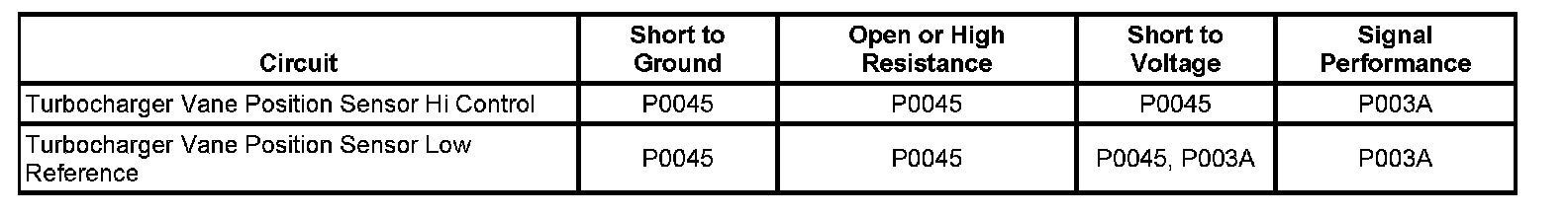 The position of the turbocharger vanes is controlled by the engine control module (ECM). The ECM utilizes a turbocharger vane control solenoid valve and a turbocharger vane position sensor to control the turbocharger vanes. The ECM will vary the boost dependant upon the load requirements of the engine. The vane control solenoid valve uses 2 circuits; a control circuit and a low reference circuit. The ECM uses a pulse width modulation on the control circuit to open and control the solenoid valve. The ECM provides a ground on the low reference circuit. Refer to Turbocharger Description and Operation.