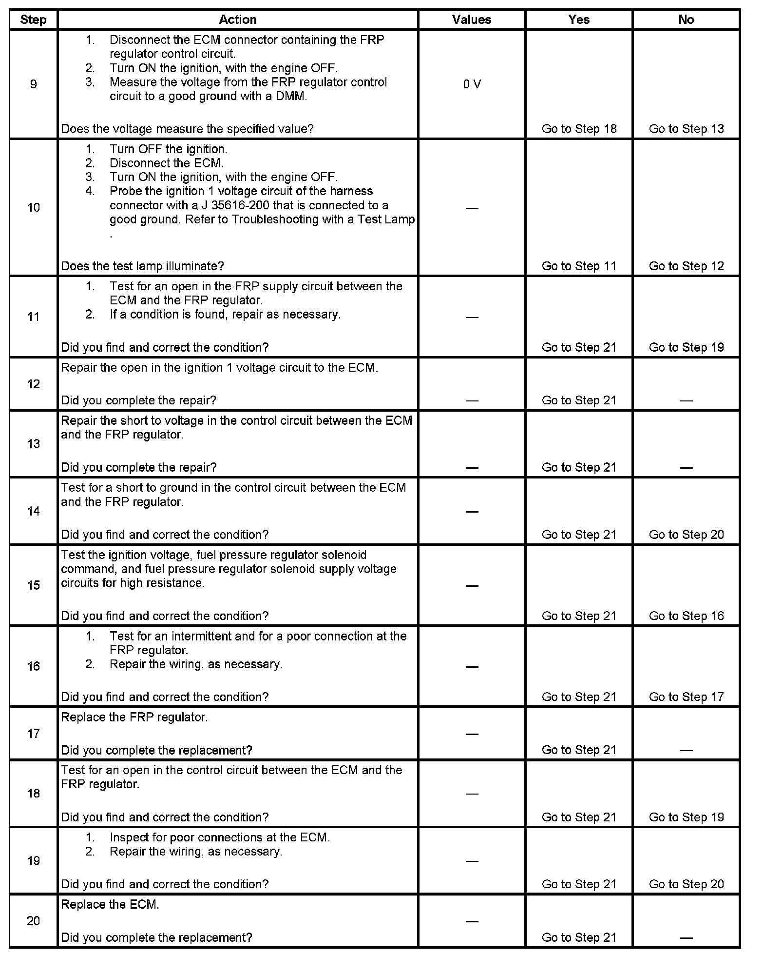 8. This step tests for an open control circuit between the ECM and the FRP regulator.