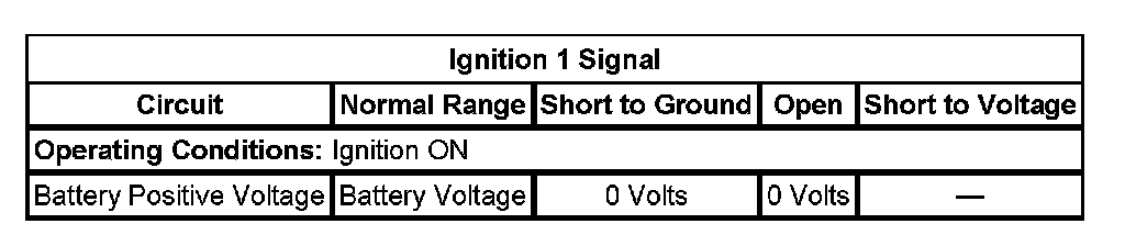 - If the ignition 1 signal parameter is not battery voltage, test the battery positive voltage circuit to the glow plug control module for an open , short to ground or for a faulty glow plug control module.