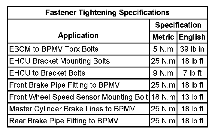 Fastener Tightening Specifications: