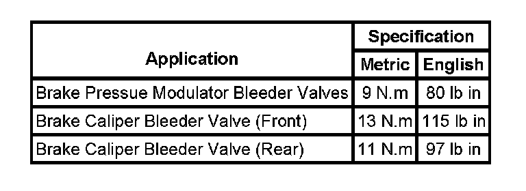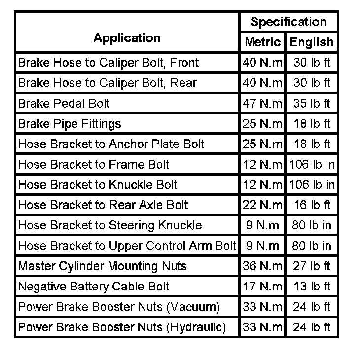 Fastener Tightening Specifications: