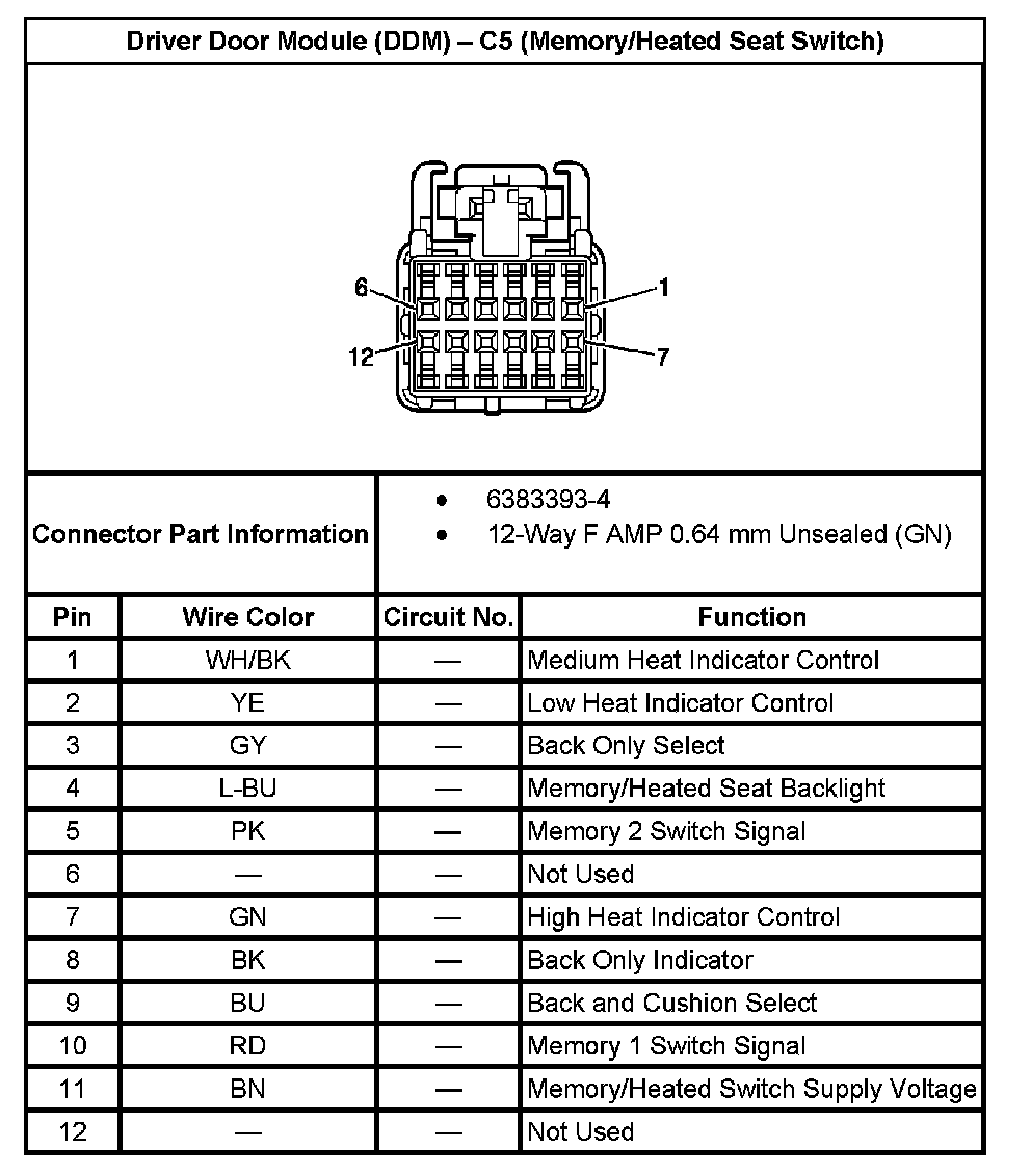 Driver Door Module (DDM) - C5 (Memory/Heated Seat Switch):