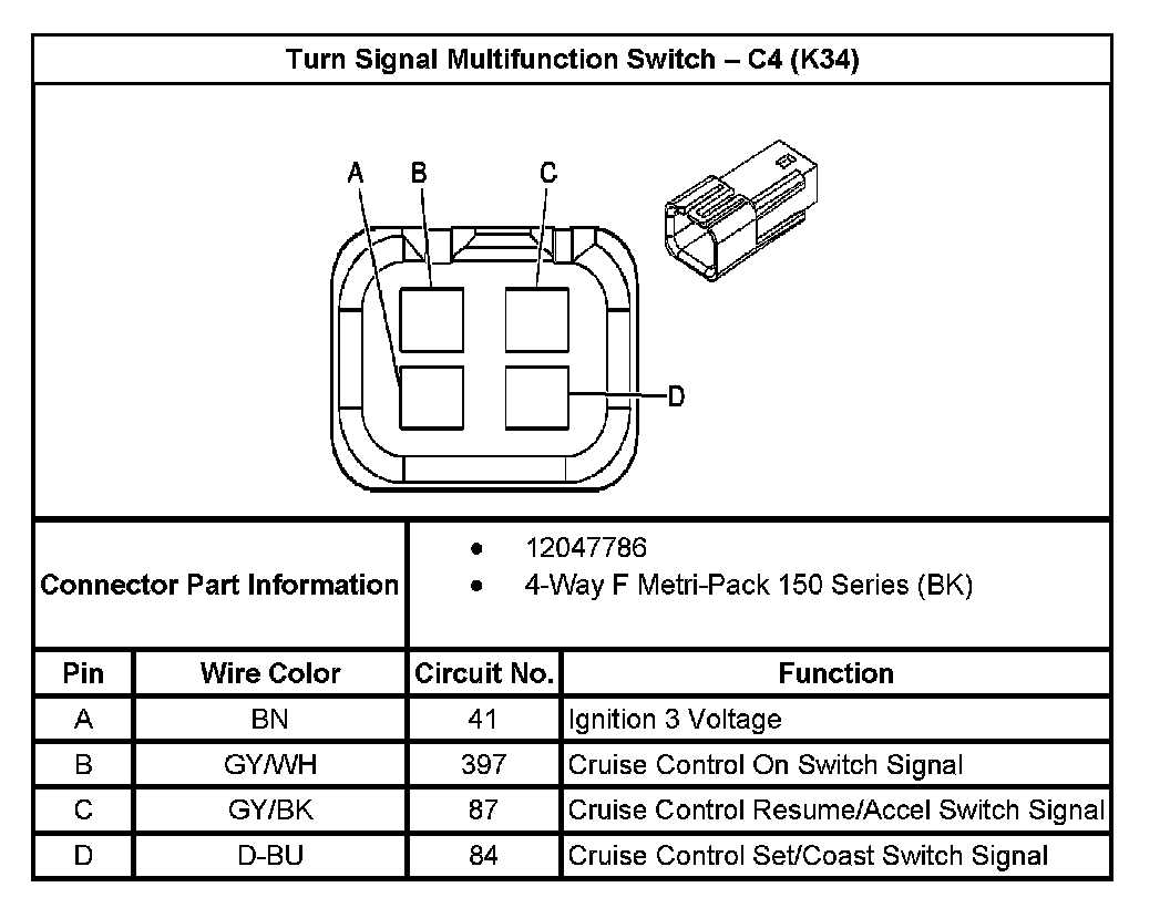 Turn Signal Multifunction Switch - C4 (With RPO Code K34):