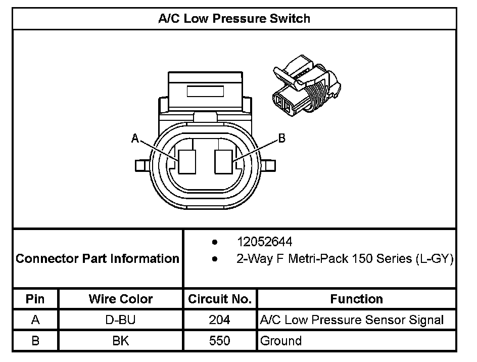 A/C Low Pressure Switch: