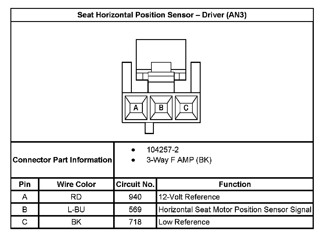 Seat Horizontal Position Sensor - Driver (With RPO Code AN3):