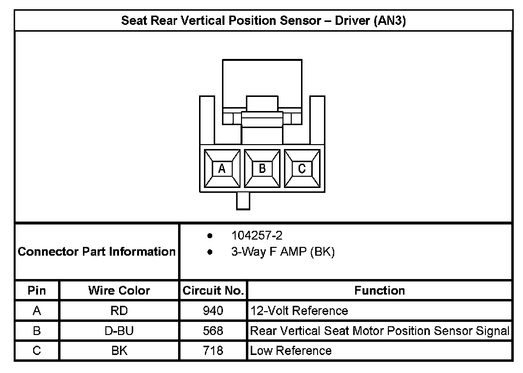 Seat Rear Vertical Position Sensor - Driver (With RPO Code AN3):