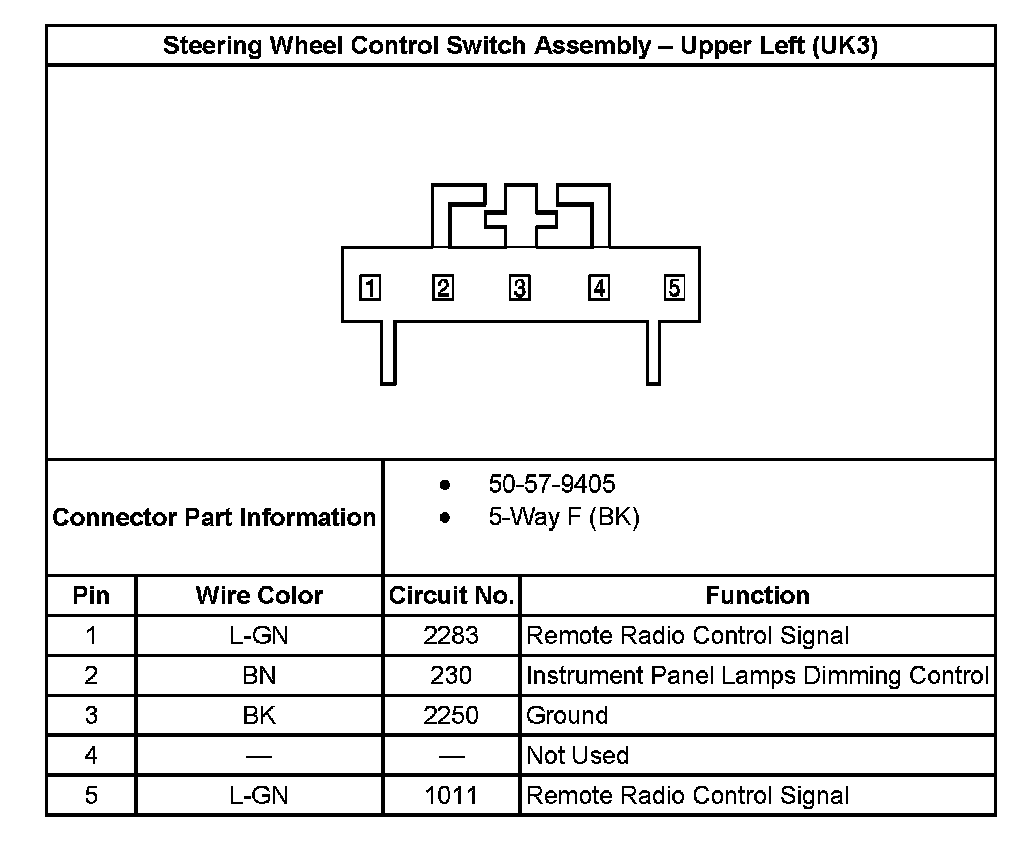 Steering Wheel Control Switch Assembly - Upper Left (UK3):