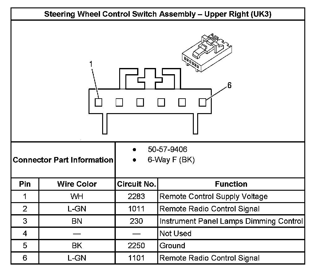 Steering Wheel Control Switch Assembly - Upper Right (UK3):