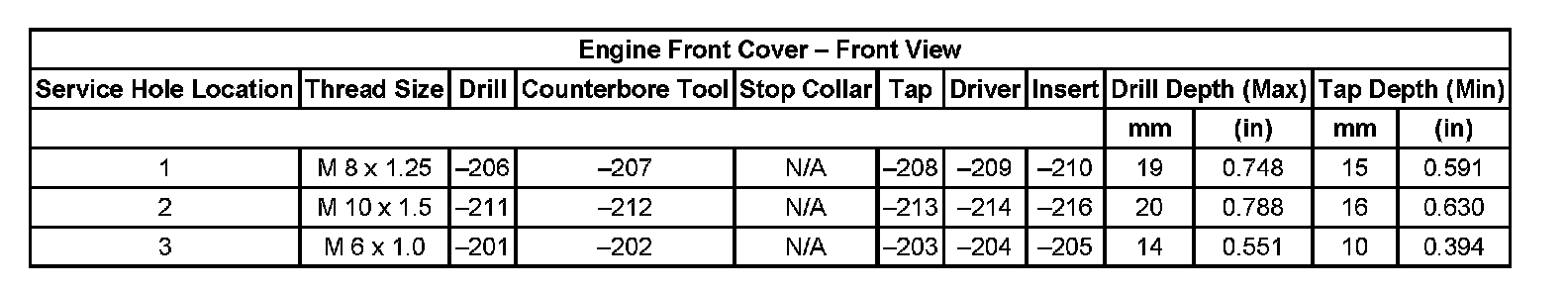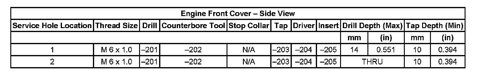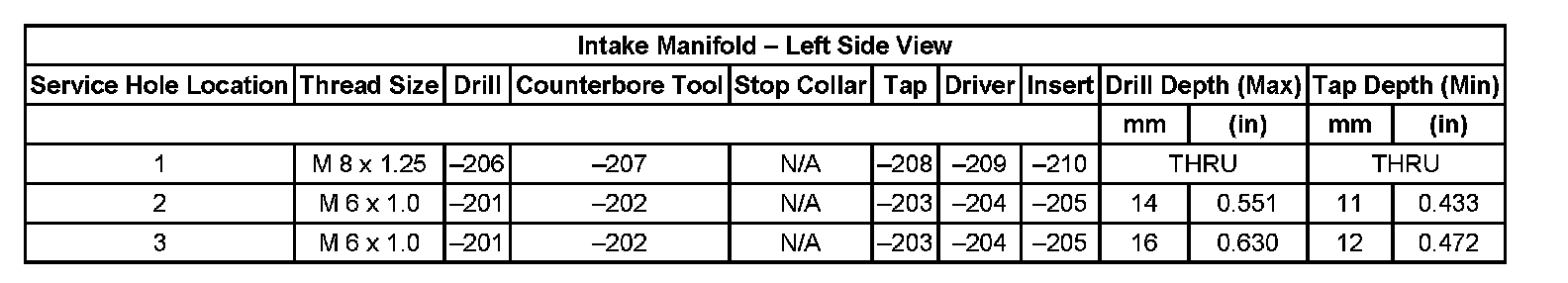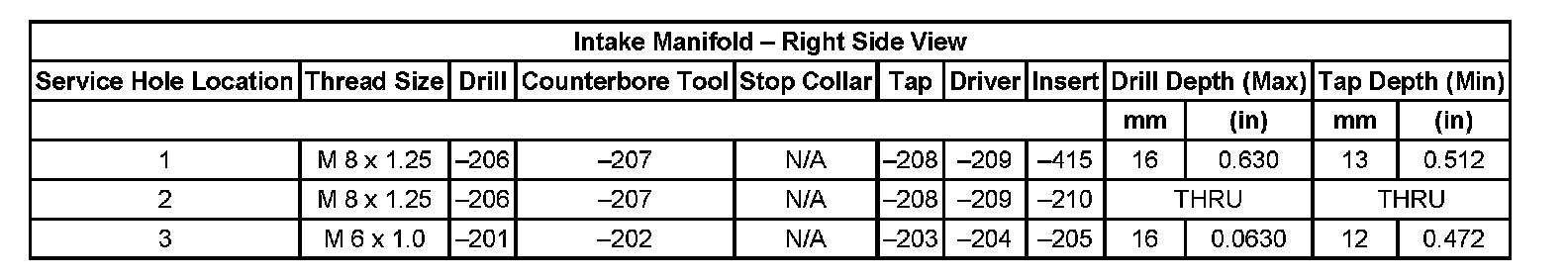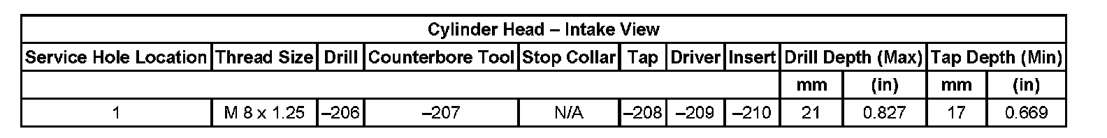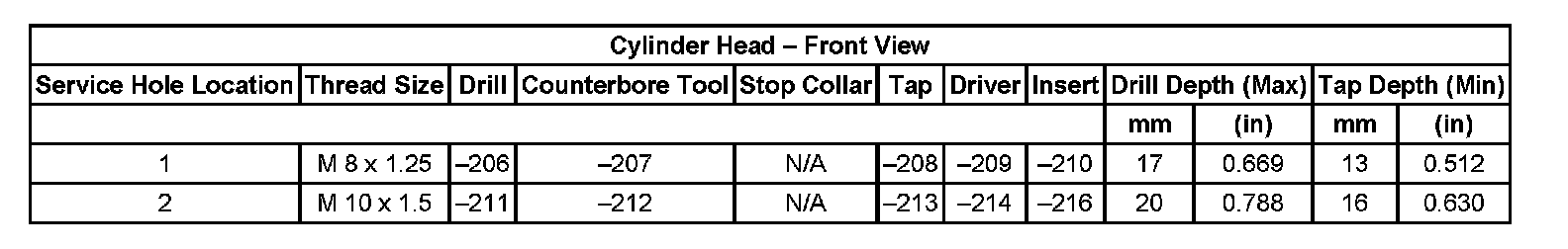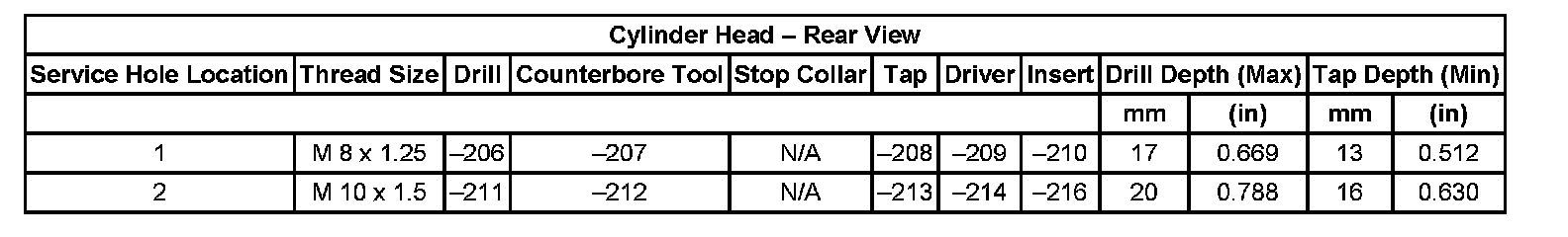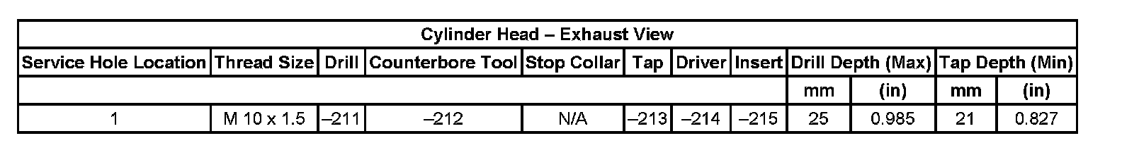 Thread Repair Specifications Cylinder Head - Exhaust View Cylinder Head: