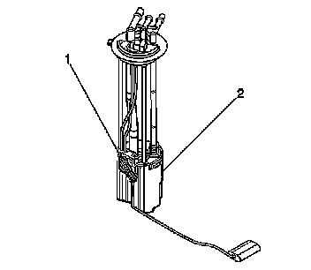 The fuel level sensor consists of a float, a wire float arm, and a ceramic resistor card. The position of the float arm indicates the fuel level. The fuel level sensor contains a variable resistor which changes resistance in correspondence with the amount of fuel in the fuel tank. The engine control module (ECM) sends the fuel level information via the class 2 circuit to the instrument panel cluster (IPC). This information is used for the instrument panel (I/P) fuel gage and the low fuel warning indicator, if applicable. The ECM also monitors the fuel level input for various diagnostics.