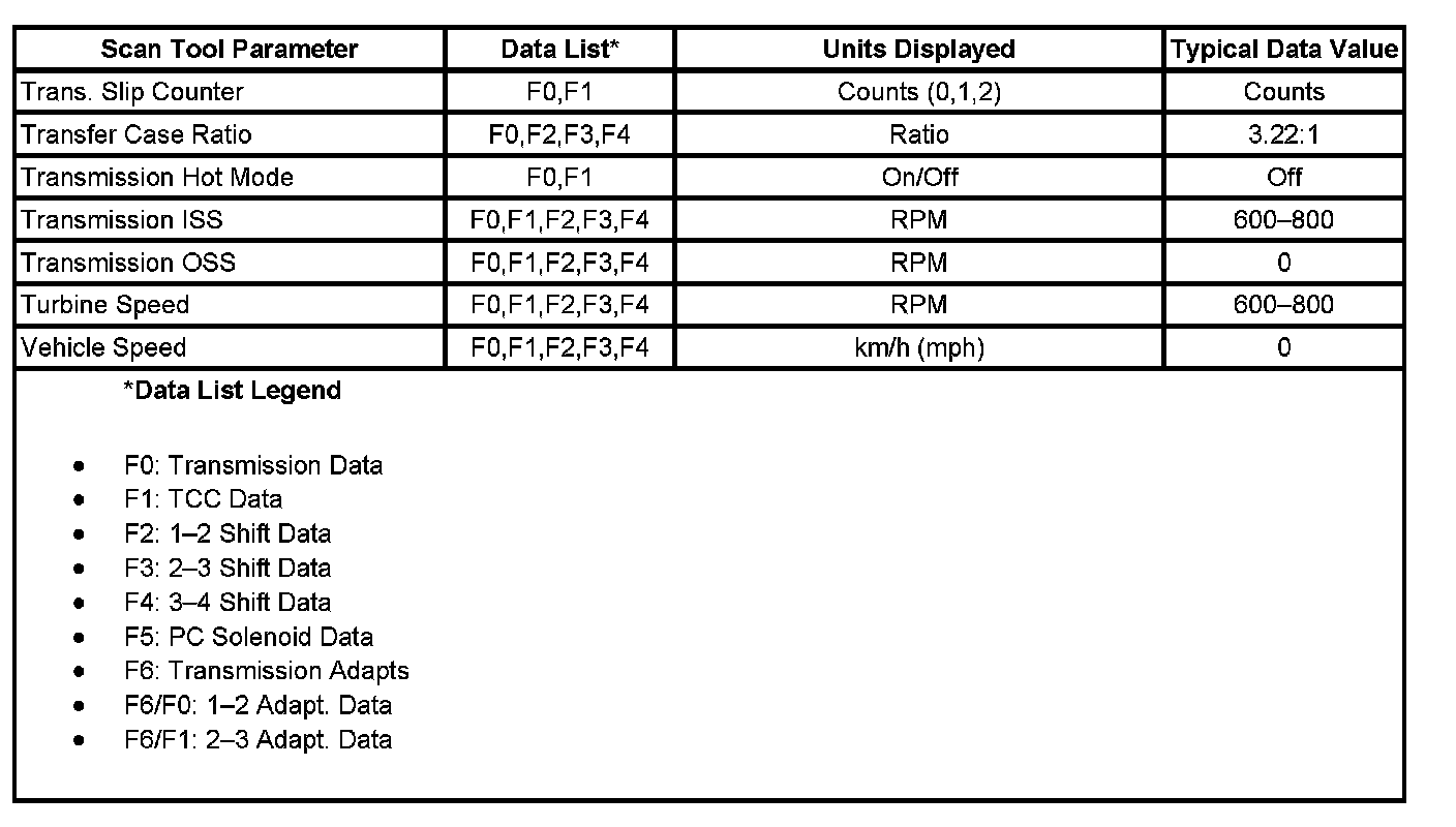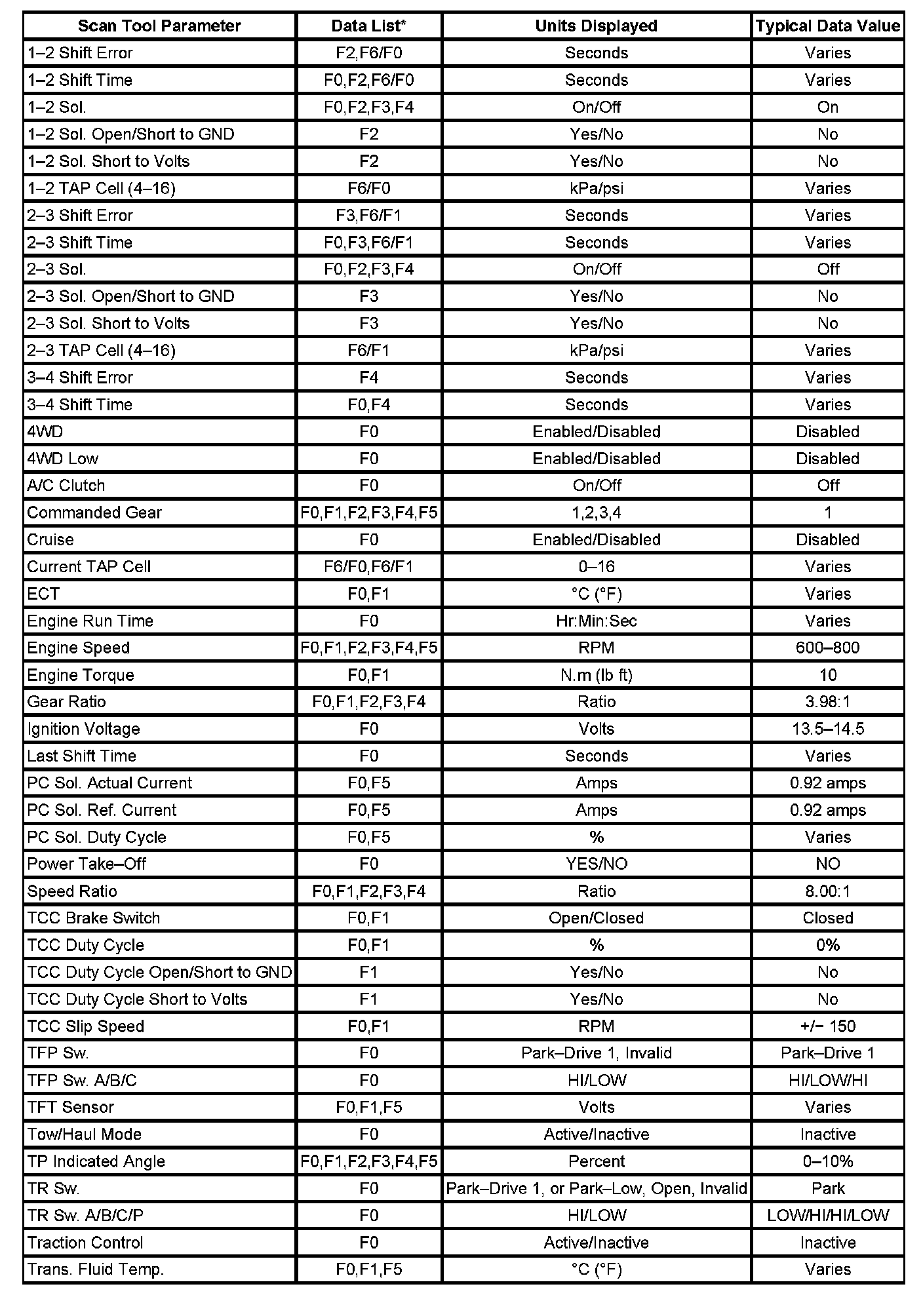 Only the parameters listed below are used in this manual for diagnosing. If a scan tool displays other parameters, the values are not recommended by General Motors for use in diagnosis.
