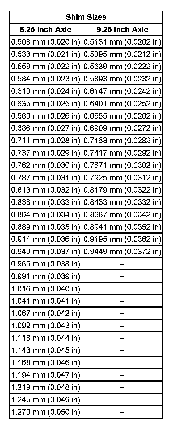 Differential pinion gear shims are available in the following sizes: