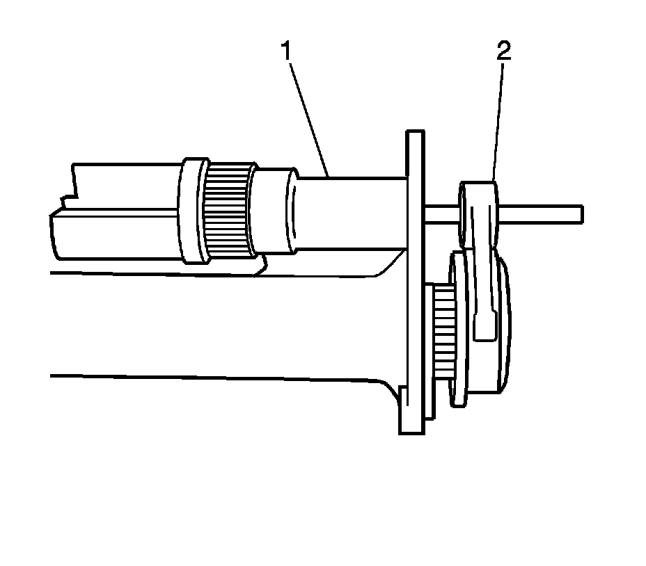 2. Install the clutch fork assembly (2) into the inner axle shaft housing (1).