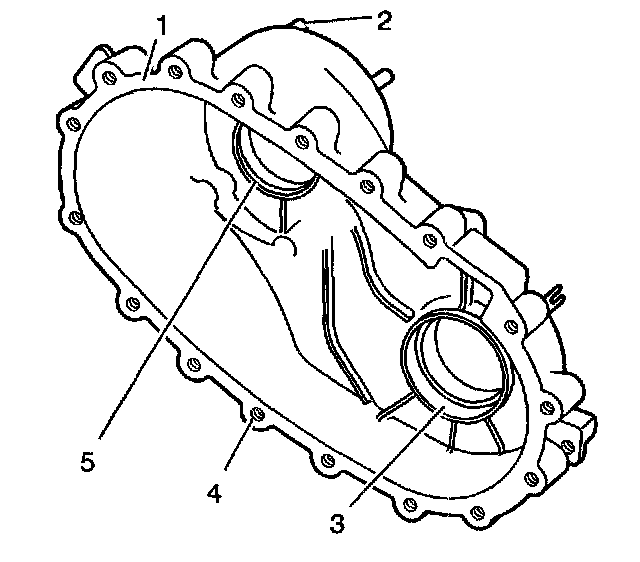 4. Inspect the front output shaft front bearing bore (3) for: Spun bearing Cracks