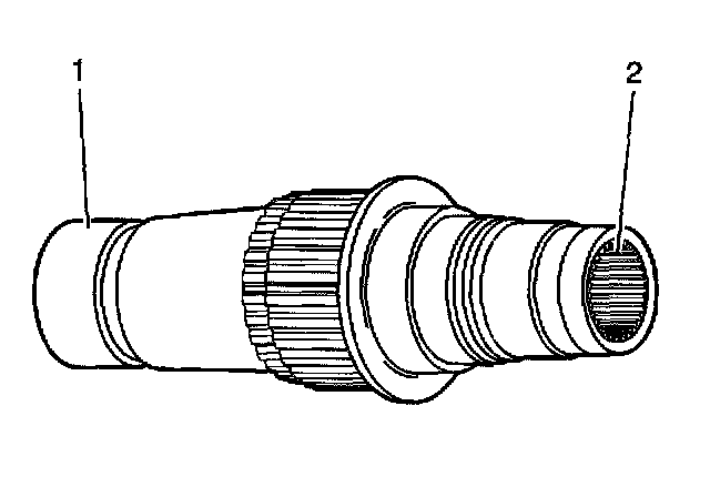 4. Inspect the mainshaft splines (2) for excessive wear. Witness marks on the splines are normal.