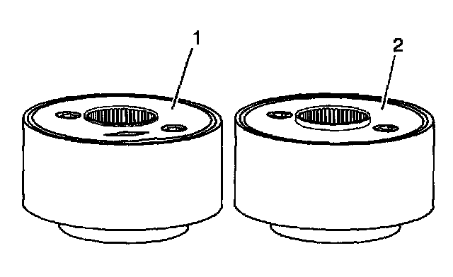 1. Inspect the viscous coupling for a bulged rear cover (1). The rear cover should be flat (2).
