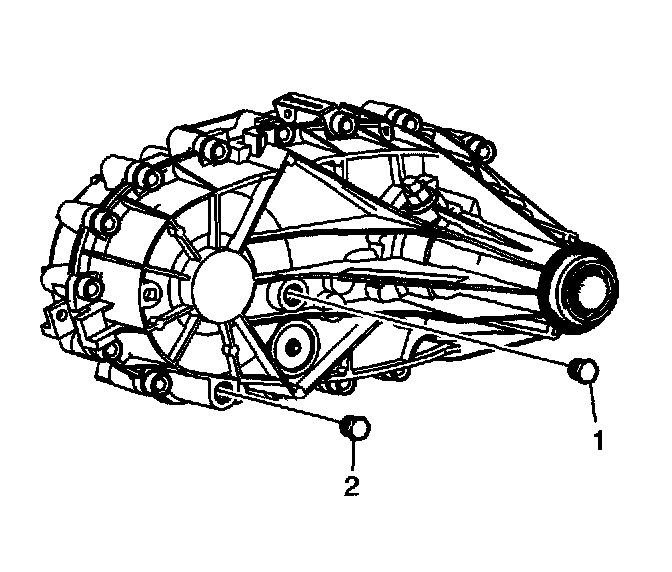 1. Remove the drain plug (2) and the fill plug (1).