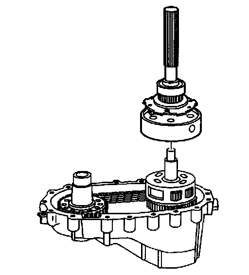 23. Remove the rear output shaft assembly. Hold the planetary carrier in place to prevent removing it with the rear output shaft.