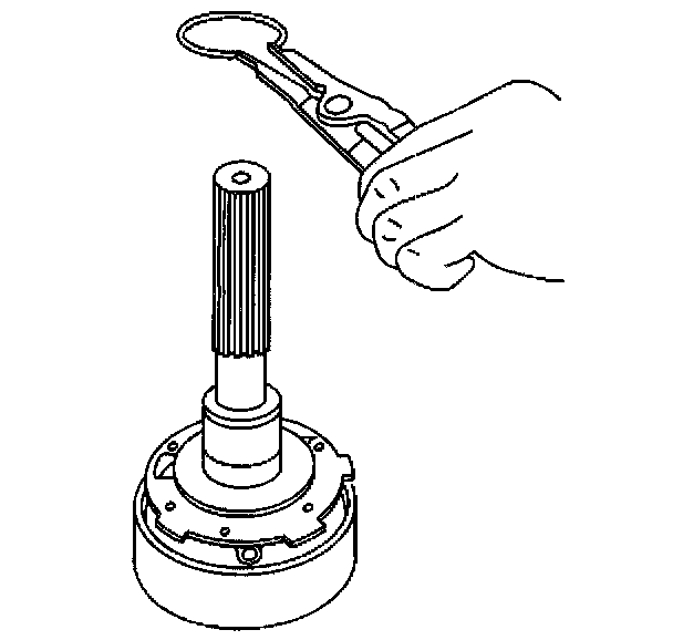 20. Using the snap ring pliers, open the outer rear output shaft bearing retaining ring.