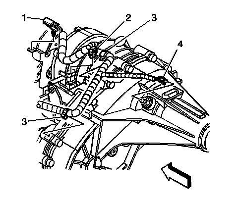 7. Remove the harness clips (3) from the transfer case.