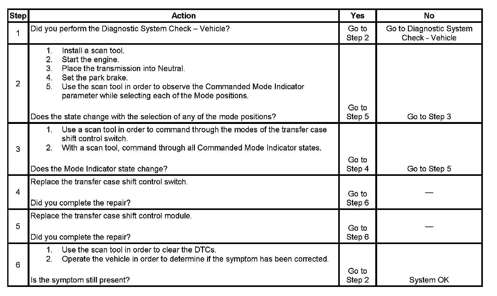 3. This step tests the modules ability to operate the transfer case modes.