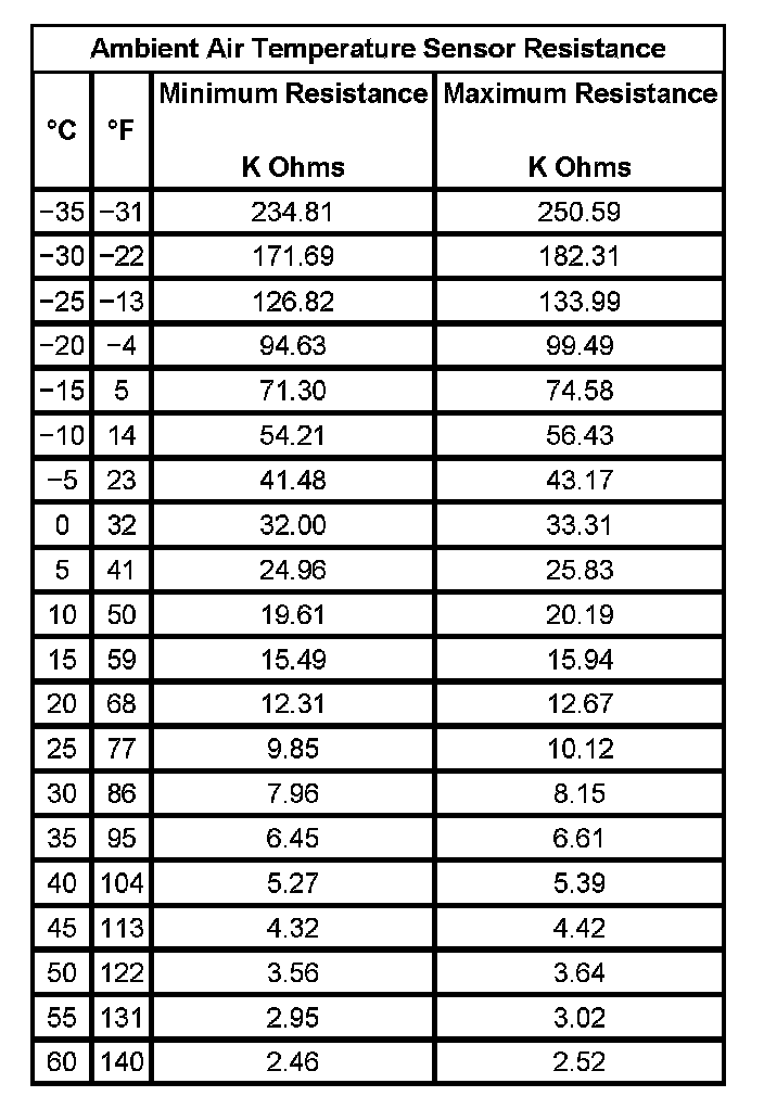 Ambient Air Temperature Sensor Resistance: