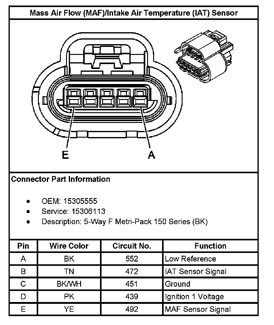 Mass Air Flow (MAF)/Intake Air Temperature (IAT) Sensor:
