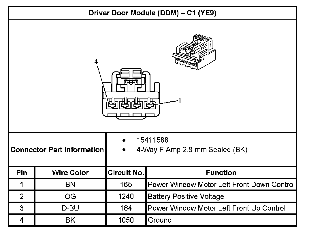 Driver Door Module (DDM) - C4 (With RPO Code YE9):