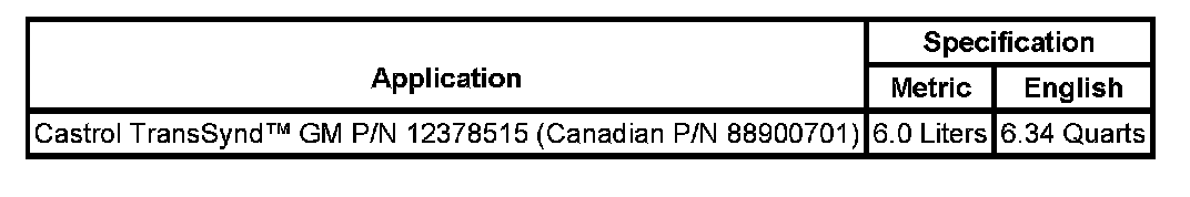 Lubrication Specifications: