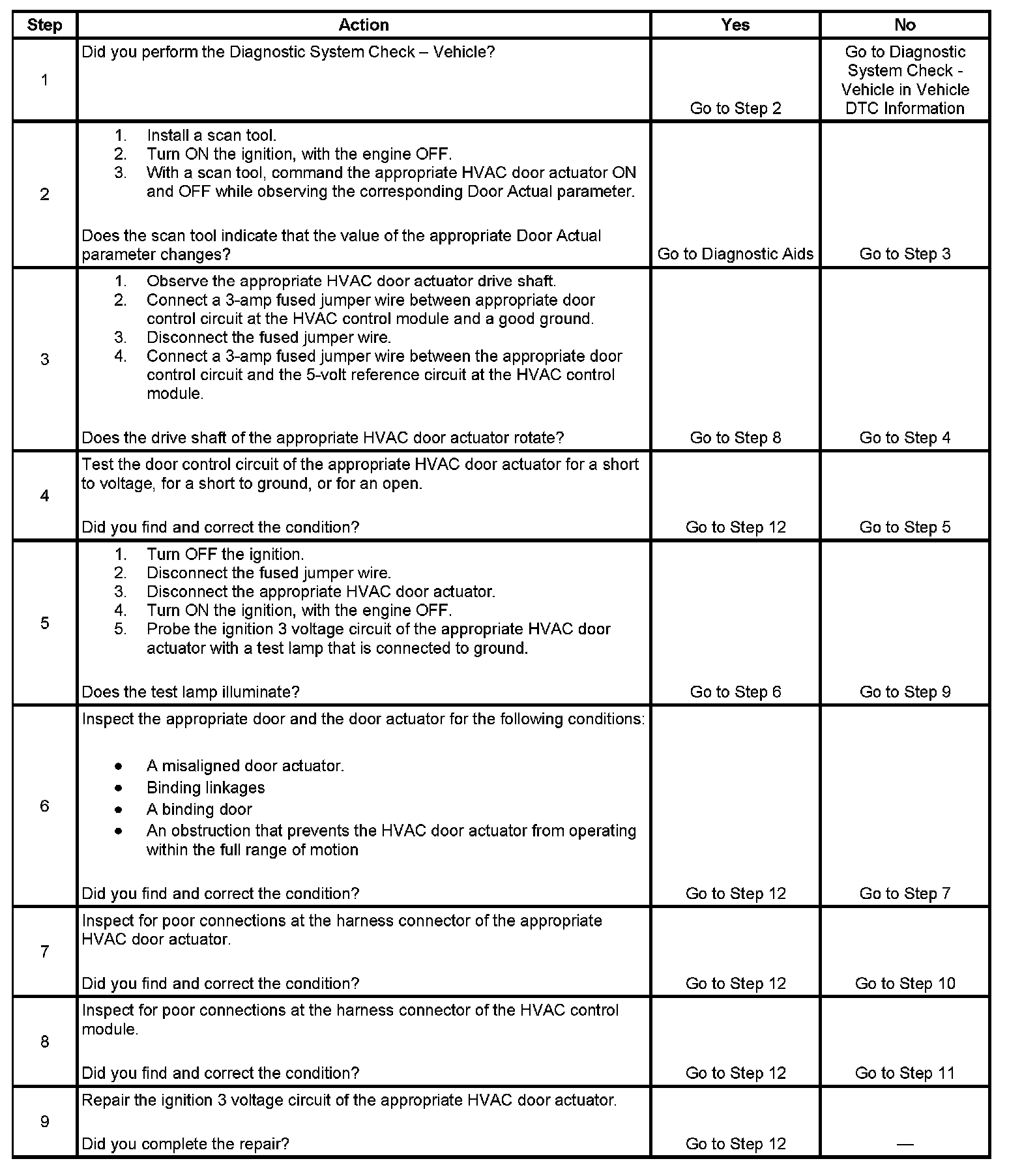 2. Determines if the HVAC door actuator is stalled.