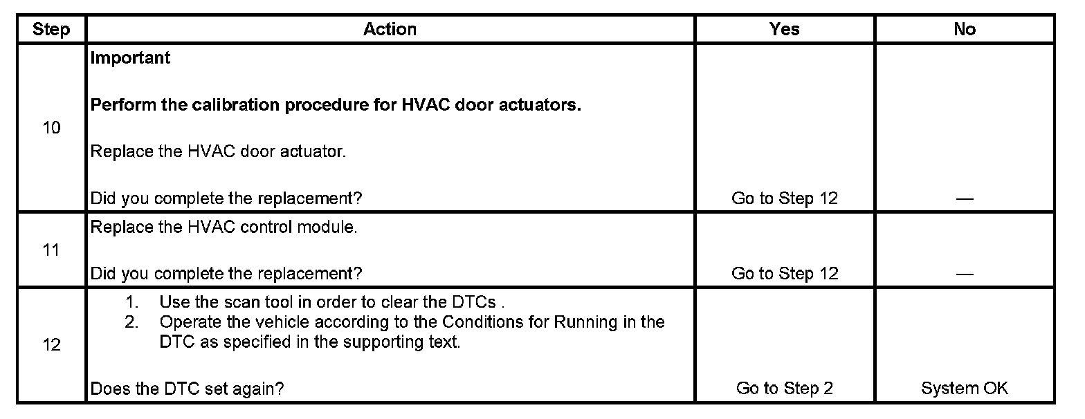 The following DTCs are for the HVAC door actuators: