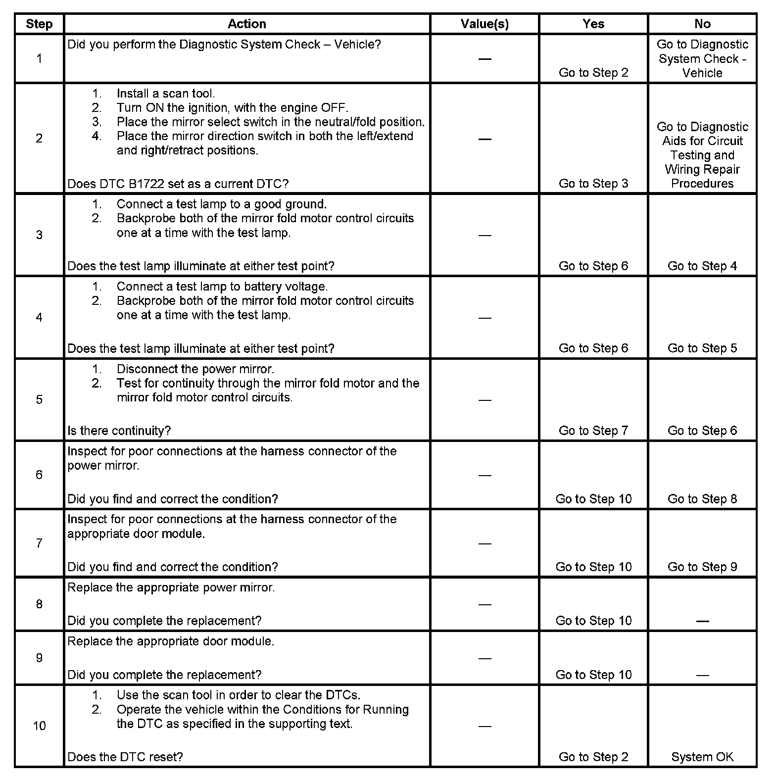 When the DDM or PDM switch the mirror fold motor control circuits to battery voltage and ground and one of the mirror fold motor control circuits are shorted to ground, shorted to battery or open.