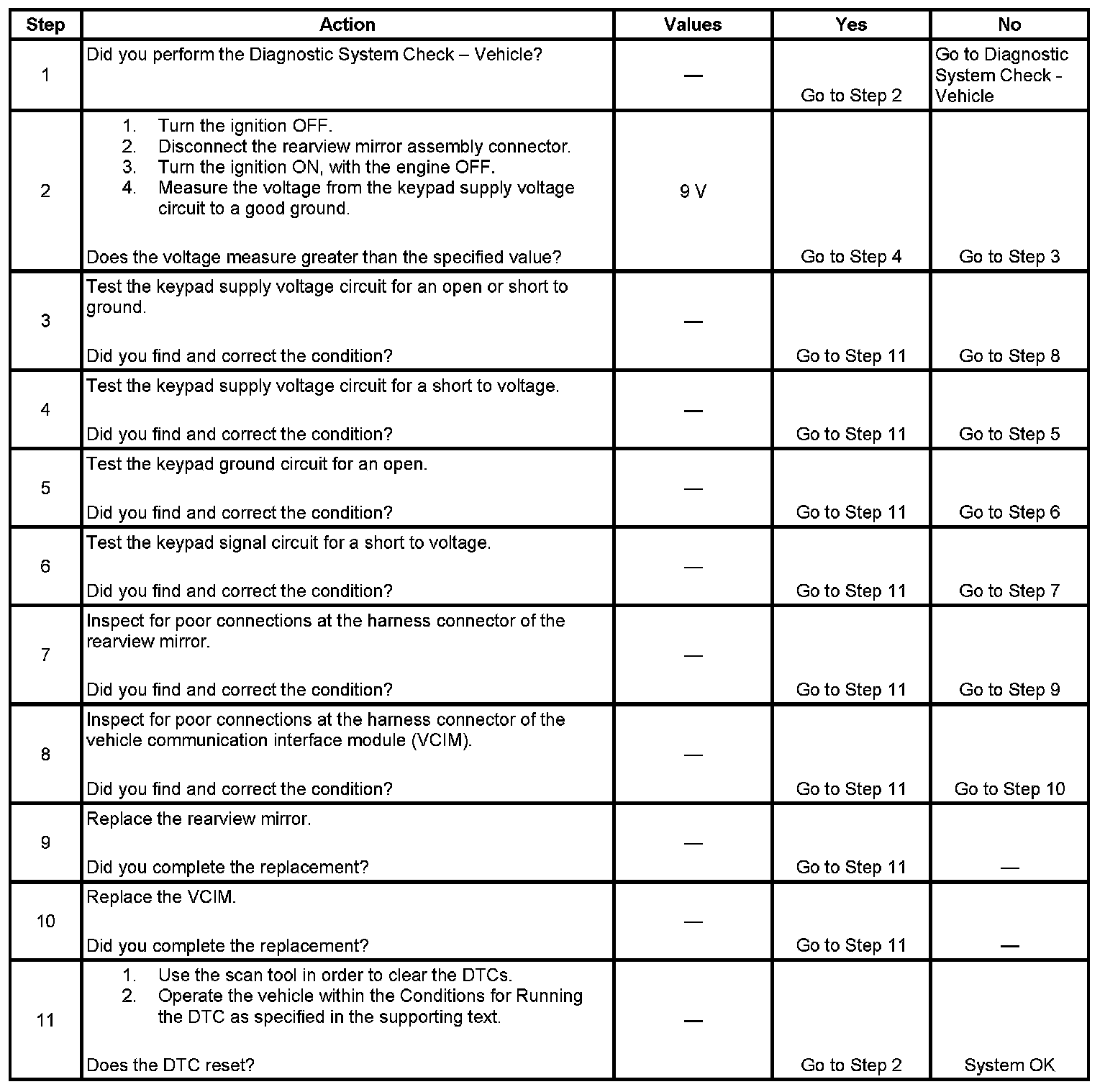 - The VCIM powers the button assembly through the keypad supply voltage circuit for 11.5 milliseconds, turns the power off, then waits for 50 milliseconds and sees a voltage value less than 1.8 volts on this circuit.