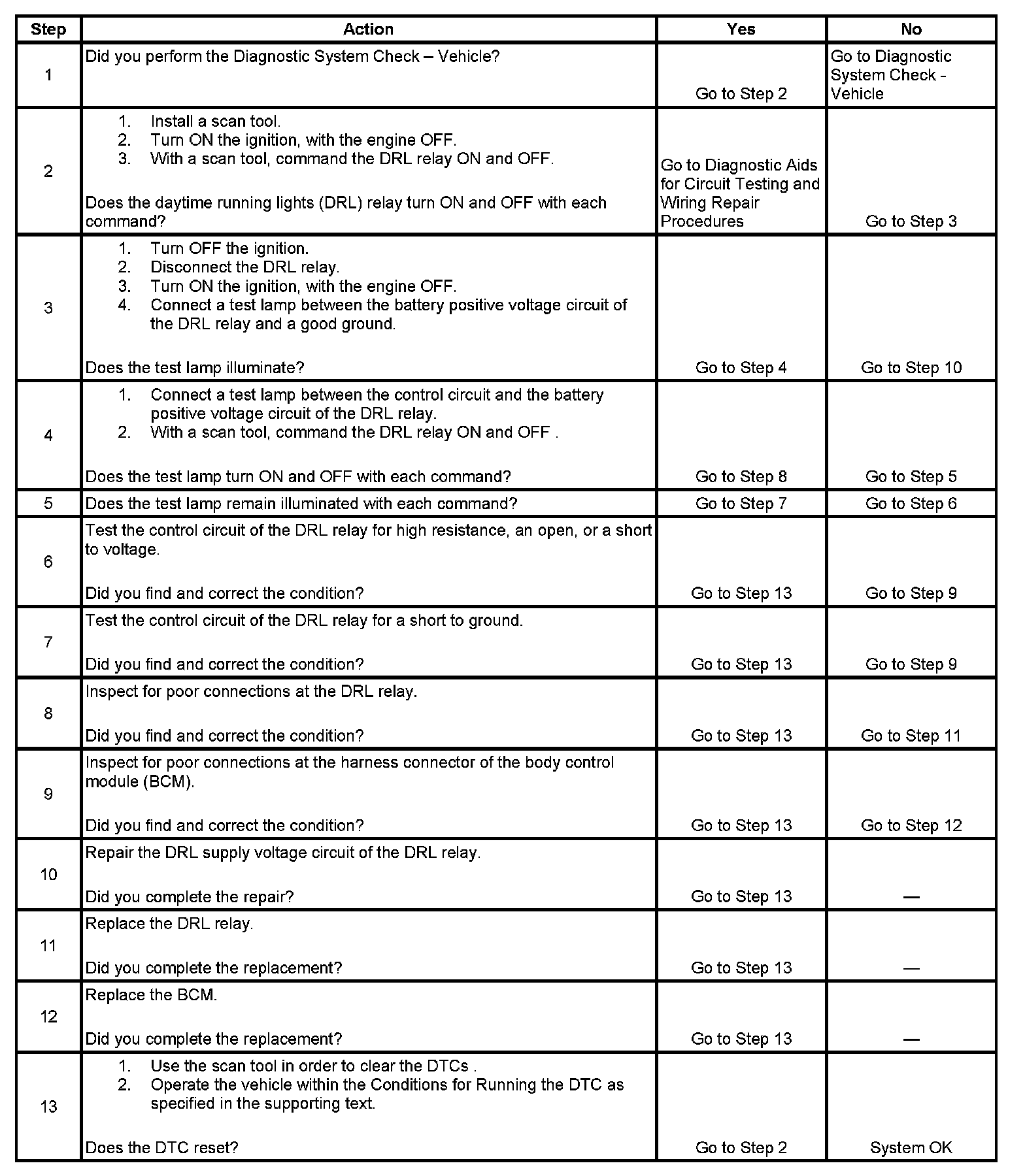 6. This step tests if there is opposing voltage present or an open in the DRL relay control circuit.