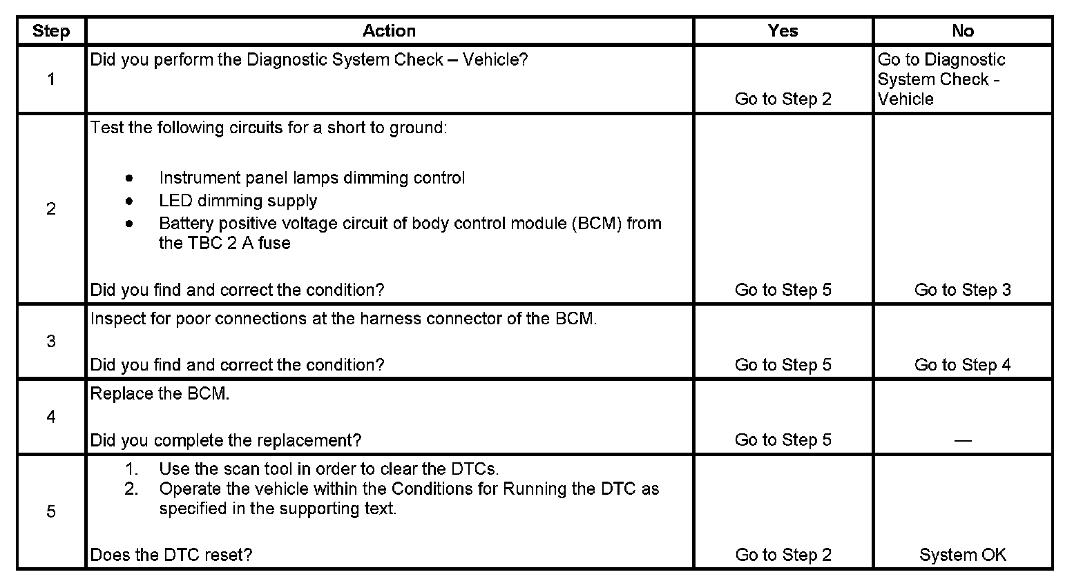 - The instrument panel lamps dimming control circuit is shorted to ground.