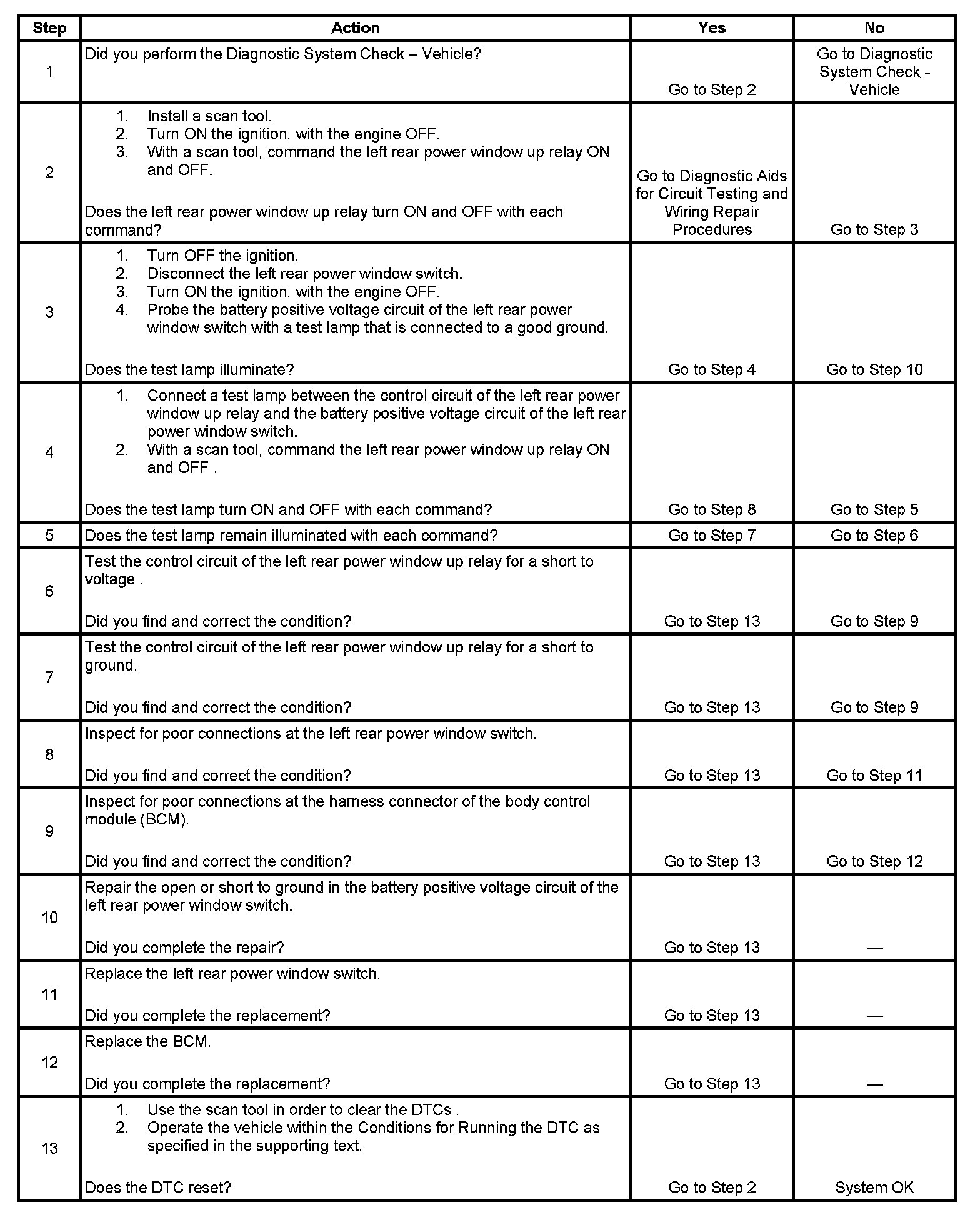 - When the BCM has grounded the left rear power window up relay control circuit and the control circuit is shorted to battery positive voltage.