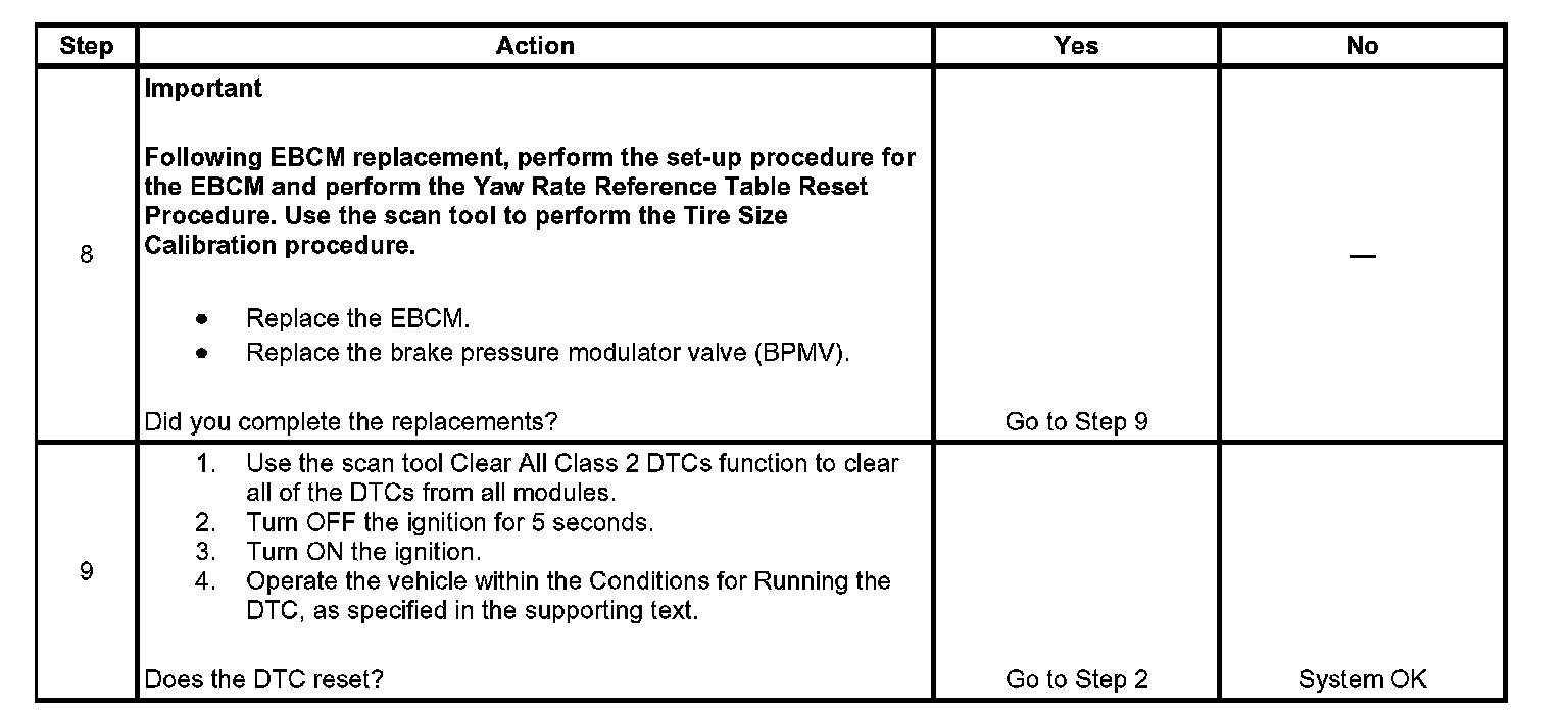 ^ The vehicle stability enhancement system (VSES) sensors have been successfully initialized or the message center has displayed the stability system disabled message due to an unsuccessful initialization attempt. Refer to ABS Description and Operation (W/JL4) for a complete explanation of VSES sensor initialization.