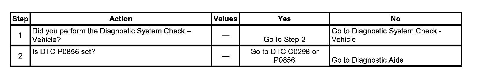 A requested torque signal malfunction is only one possible cause for setting this DTC. DTC C0240 may set due to engine overheating, throttle actuator control failure, loss of ignition timing control by the PCM, etc. If DTC P0856 has not set, refer to Diagnostic System Check - Vehicle in order to identify other possible causes of DTC C0240. Testing and Inspection