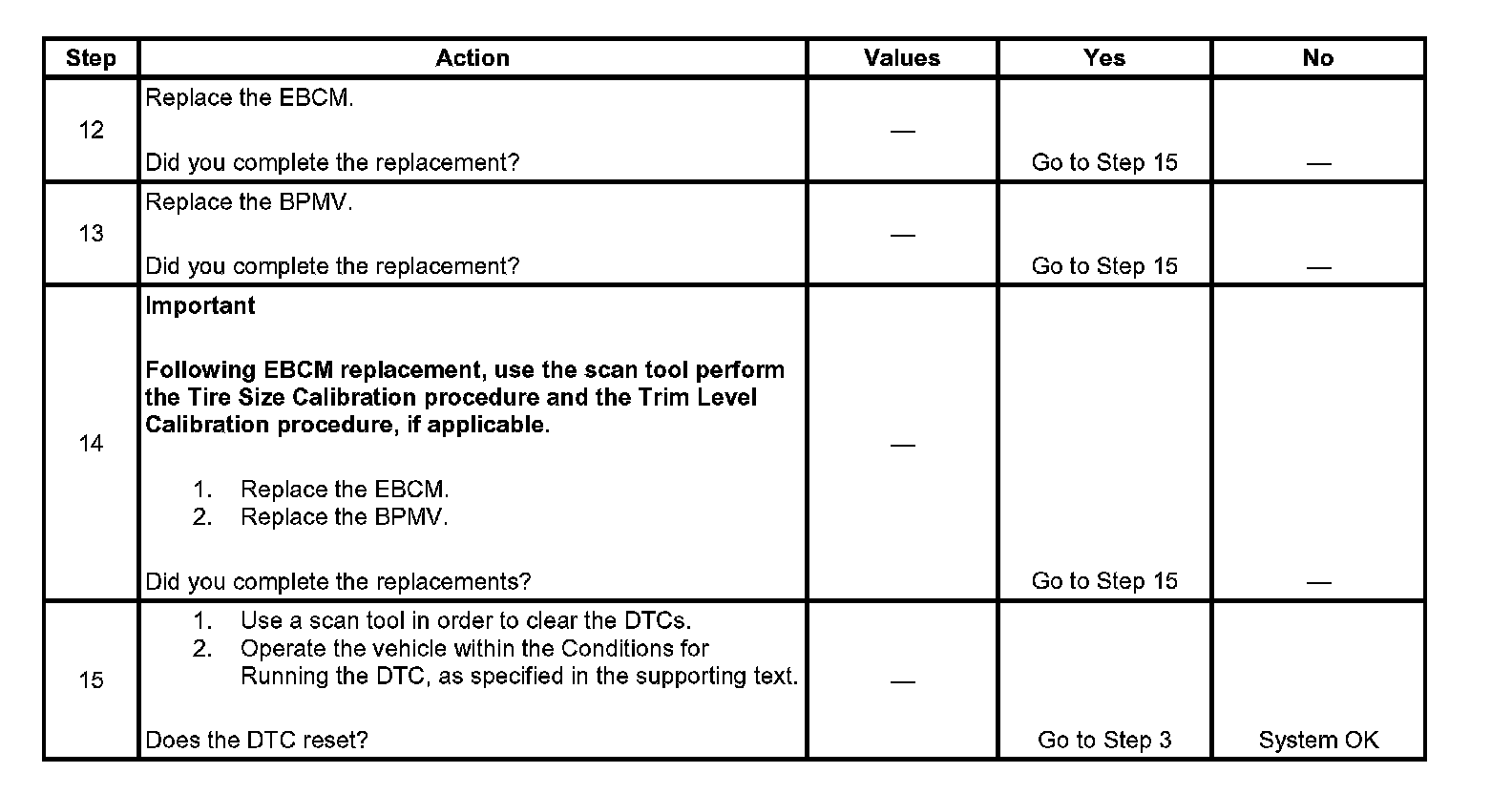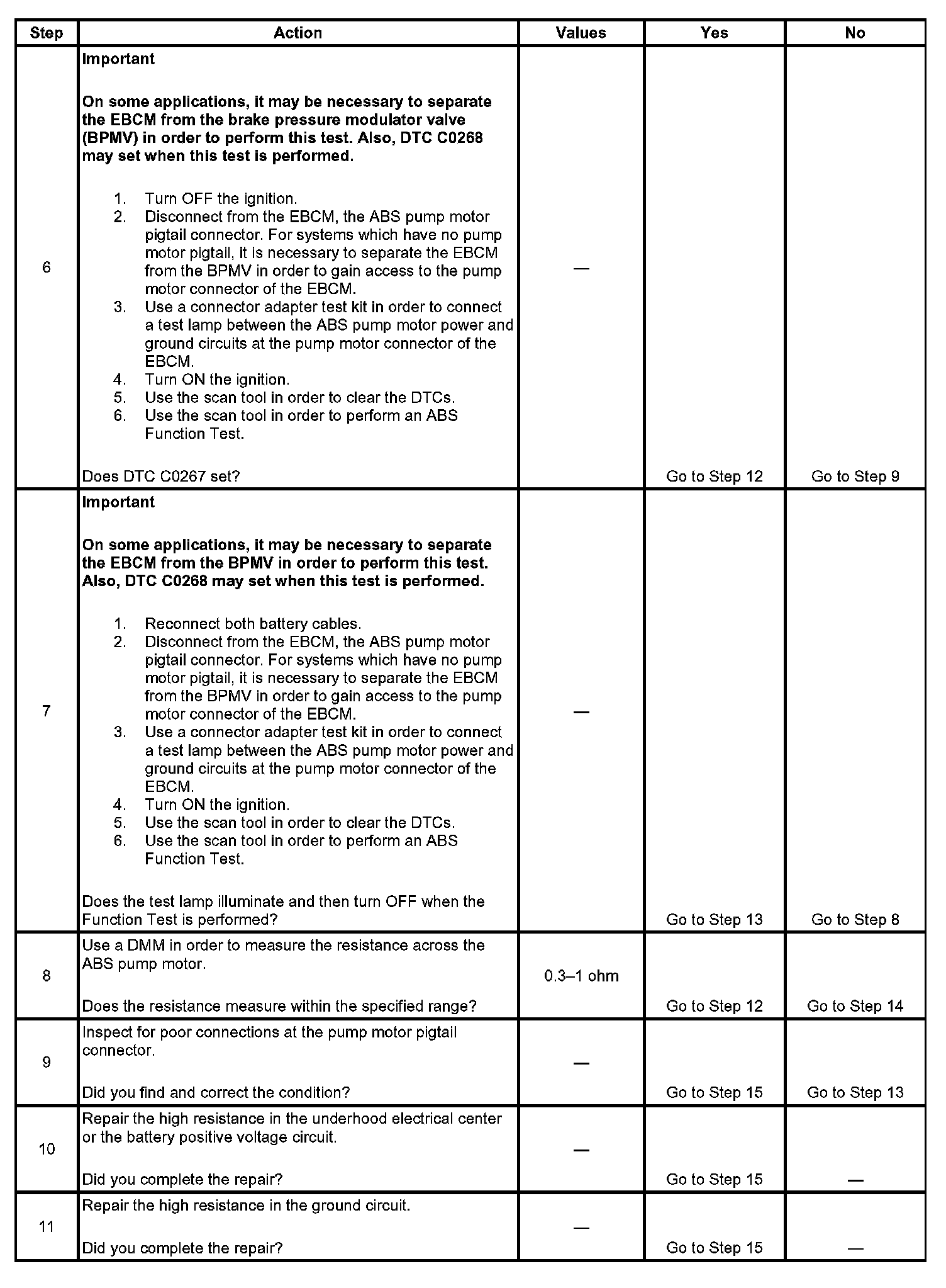 8. A shorted ABS pump motor may damage the EBCM. It is imperative that the steps in the table be followed in order to prevent damage to a replacement EBCM.