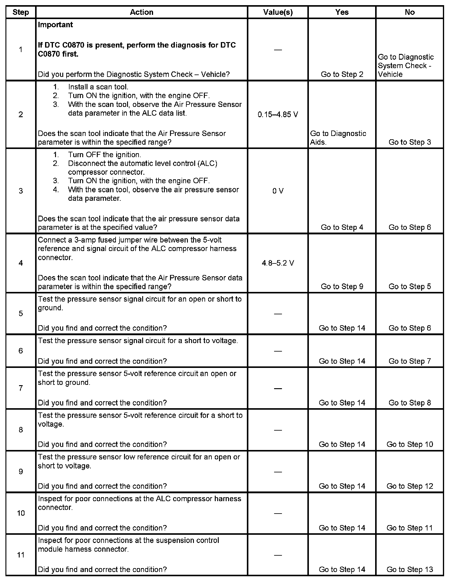 DTC C0711 Level Control Air Pressure Sensor Circuit