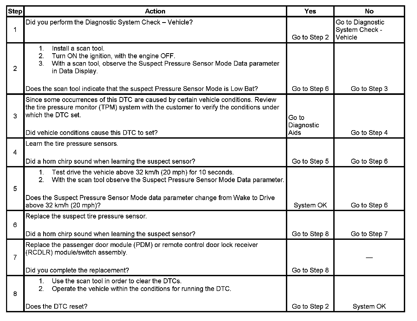 ^ Occasionally sensors can become mislocated due to previous tire rotations where the sensor learn procedure was not performed. Always learn the sensors to ensure the DTC set is for that actual physical corner of the vehicle.
