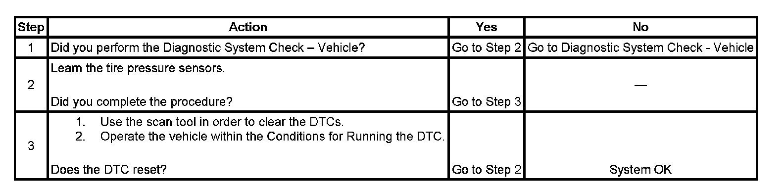 ^ A current DTC will clear when the sensor ID codes have been learned into the PDL or RCDLRs memory.