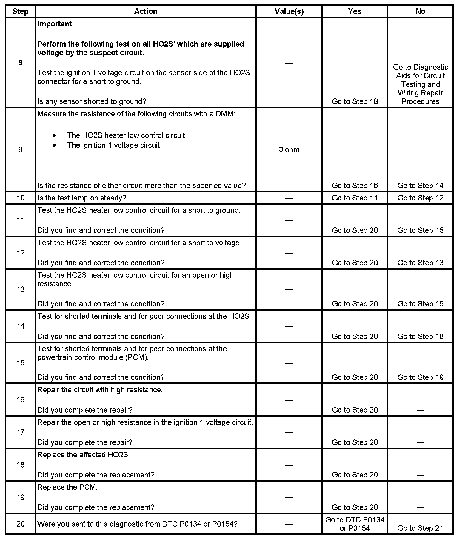 - The PCM detects that the affected HO2S Heater current parameter is greater than 3.125 amps or less than 0.25 amps.