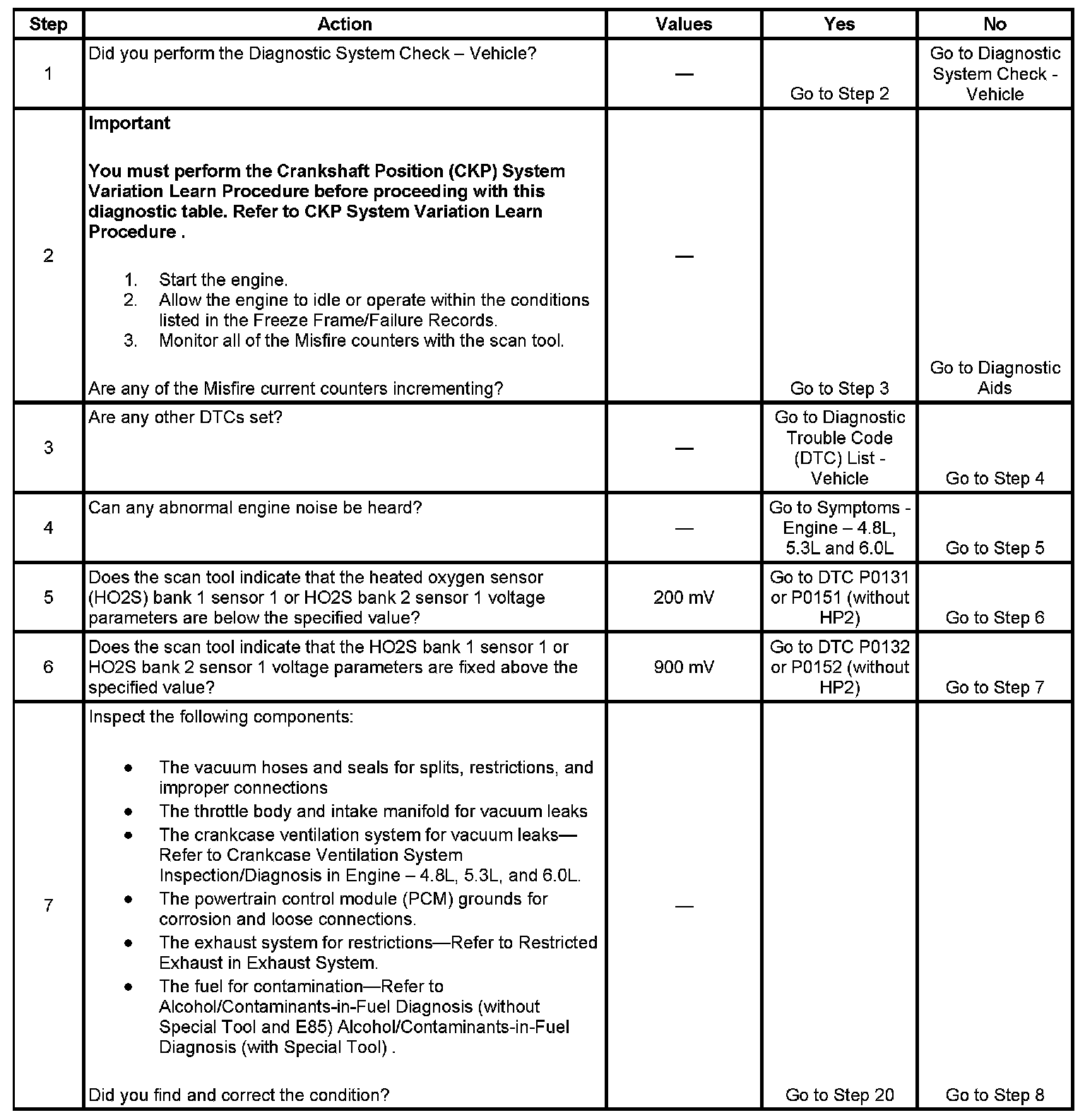 2. If the actual CKP variation values are not within the learned values, the misfire counters may increment.