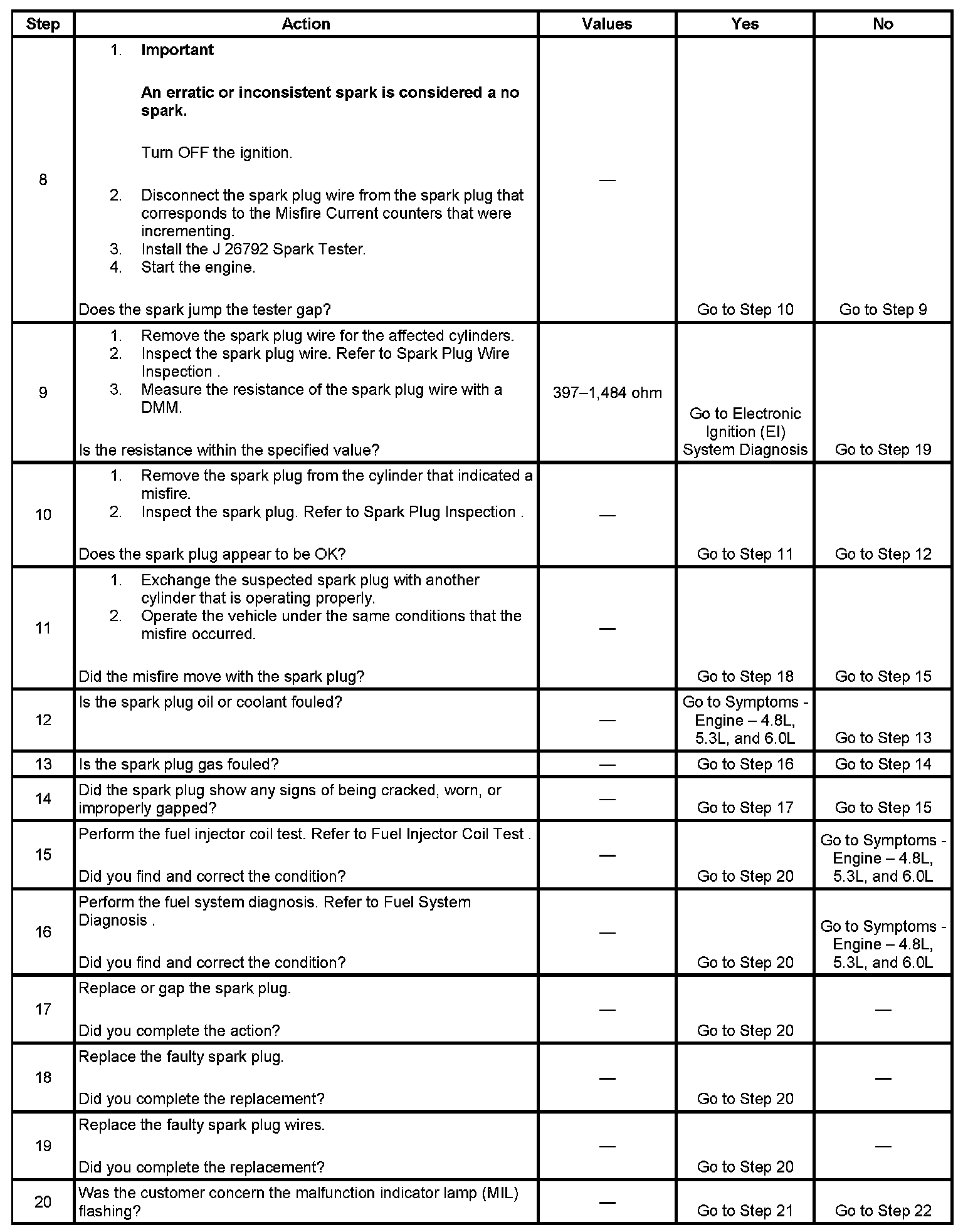 - If there are multiple misfires on only one bank, inspect the fuel injector and ignition coil, power and ground circuits for that bank.