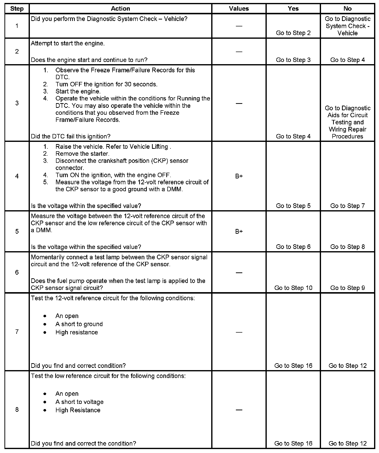 - The CKP sensor signal circuit