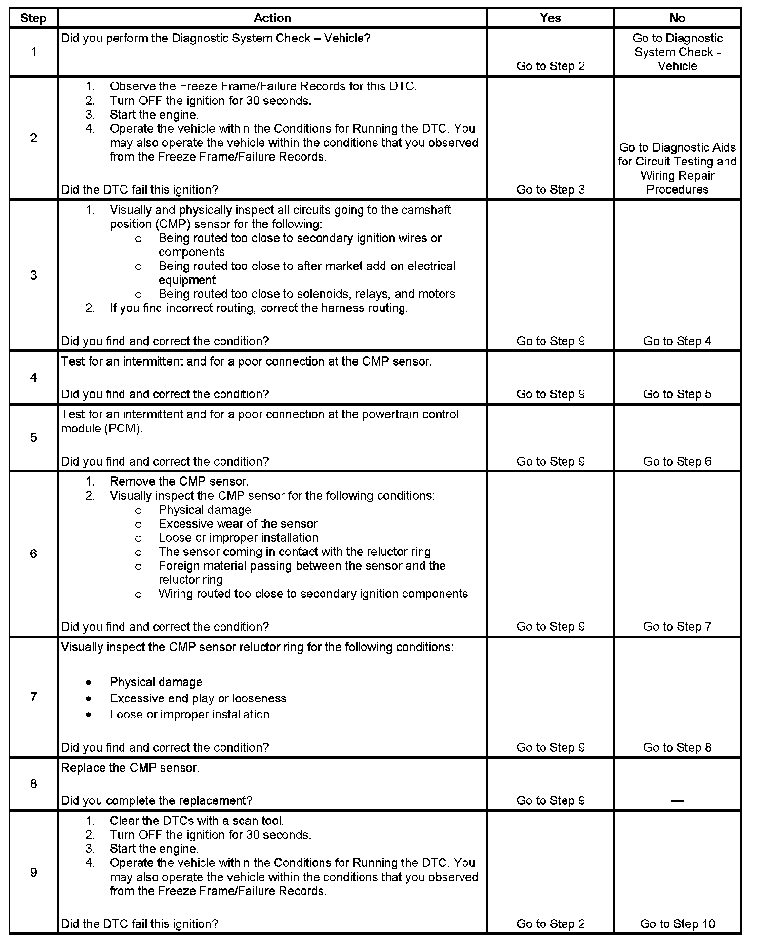 6. Damage to the face of the sensor could indicate foreign material passing between the CMP sensor and the reluctor wheel. This condition would cause this DTC to set. Damage to the reluctor wheel would affect the CMP sensor output.